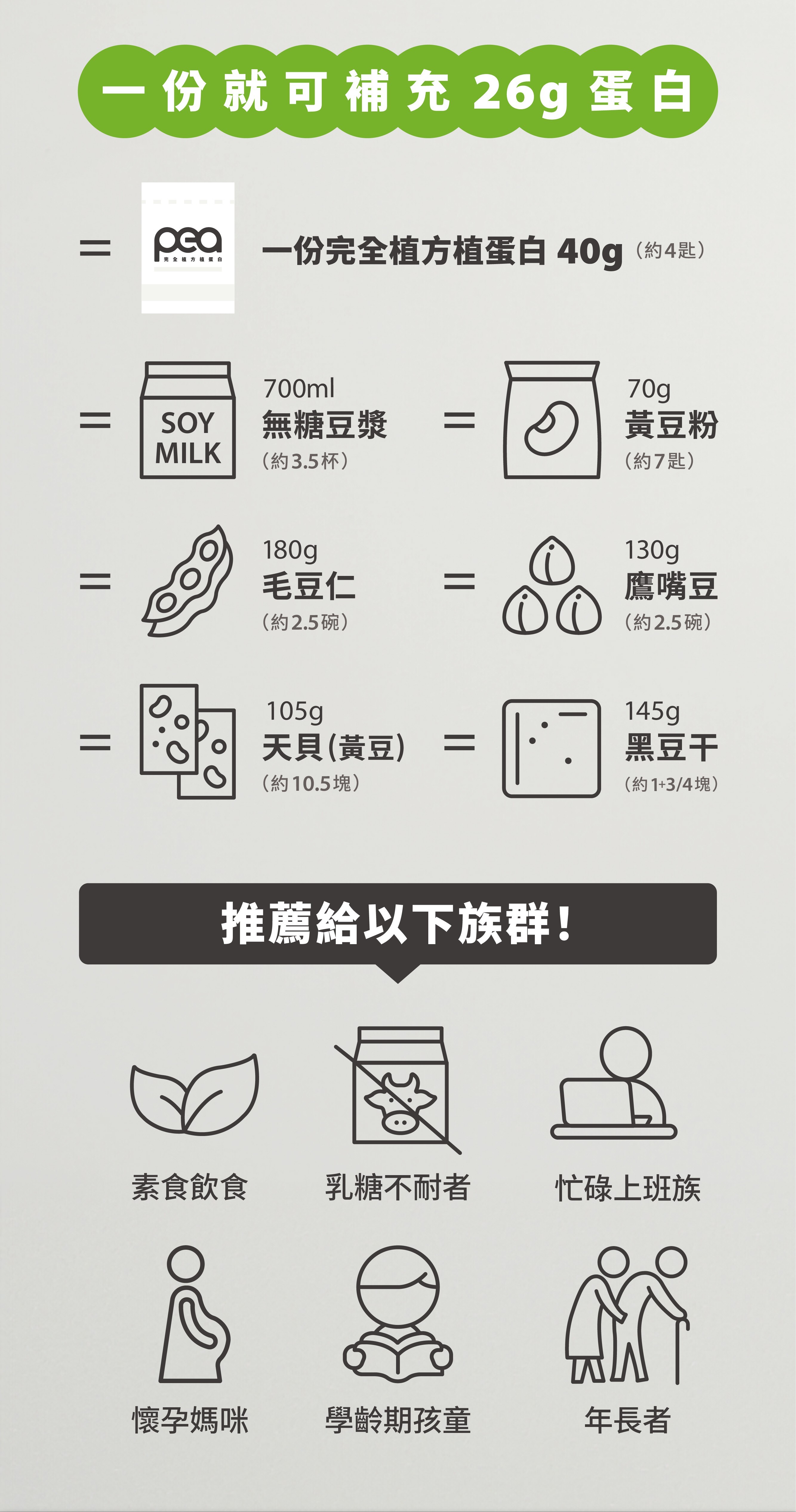 ✔️ 豌豆蛋白+米蛋白,複方打造完全蛋白質💯