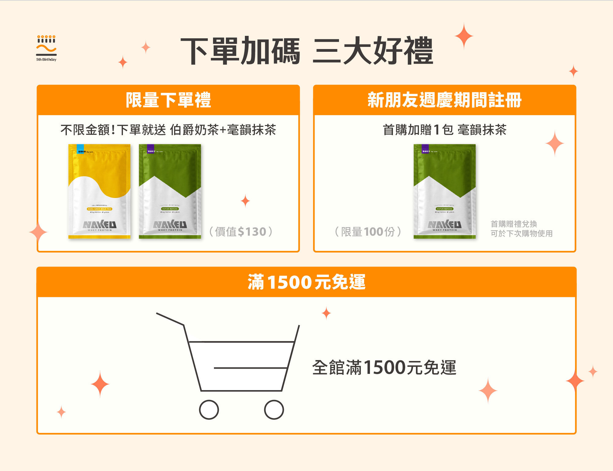 五週年慶開跑🎂!全館滿$1,500免運,下單贈〈奶茶+抹茶〉2入組