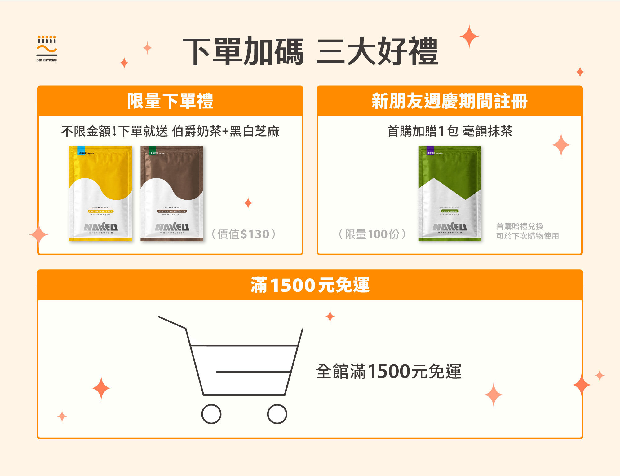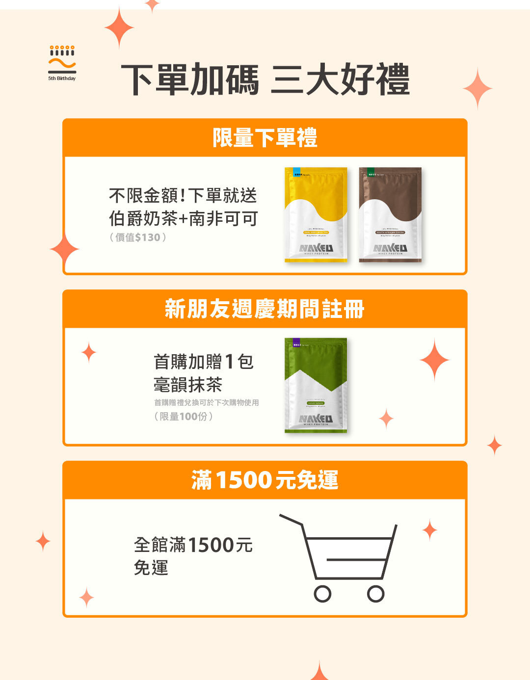 五週年慶開跑🎂!全館滿$1,500免運,下單贈〈奶茶+抹茶〉2入組