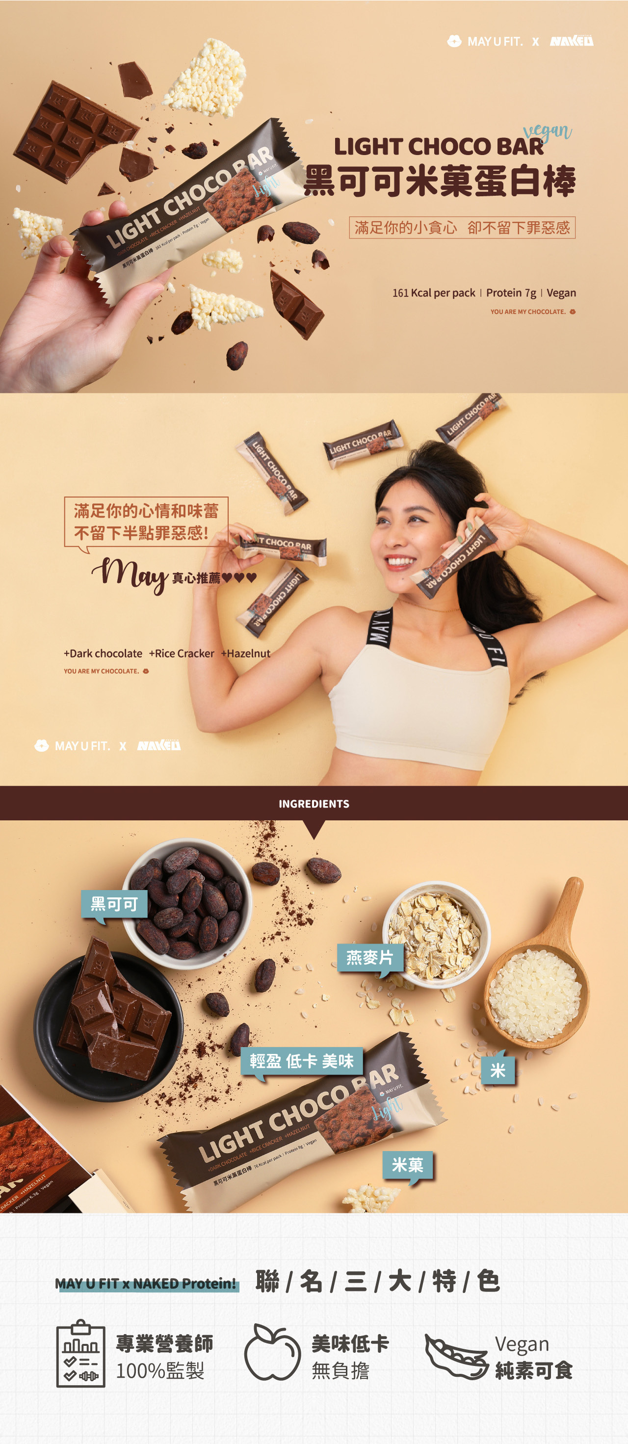 純素黑可可米菓蛋白棒 (8入 / 16入)