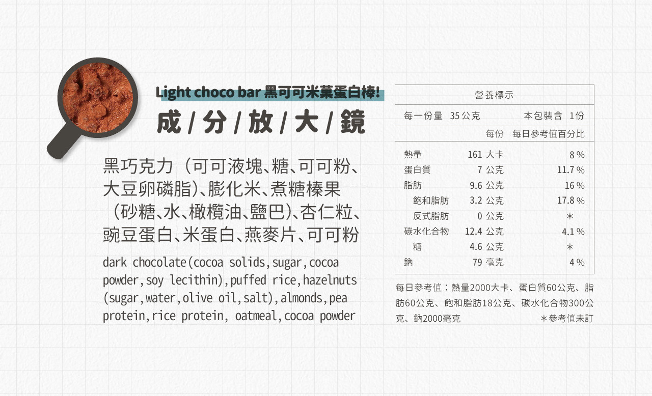 ✔ 米菓脆酥口感,外裹純可可粉,內部點綴榛果醬,苦甜平衡不黏膩