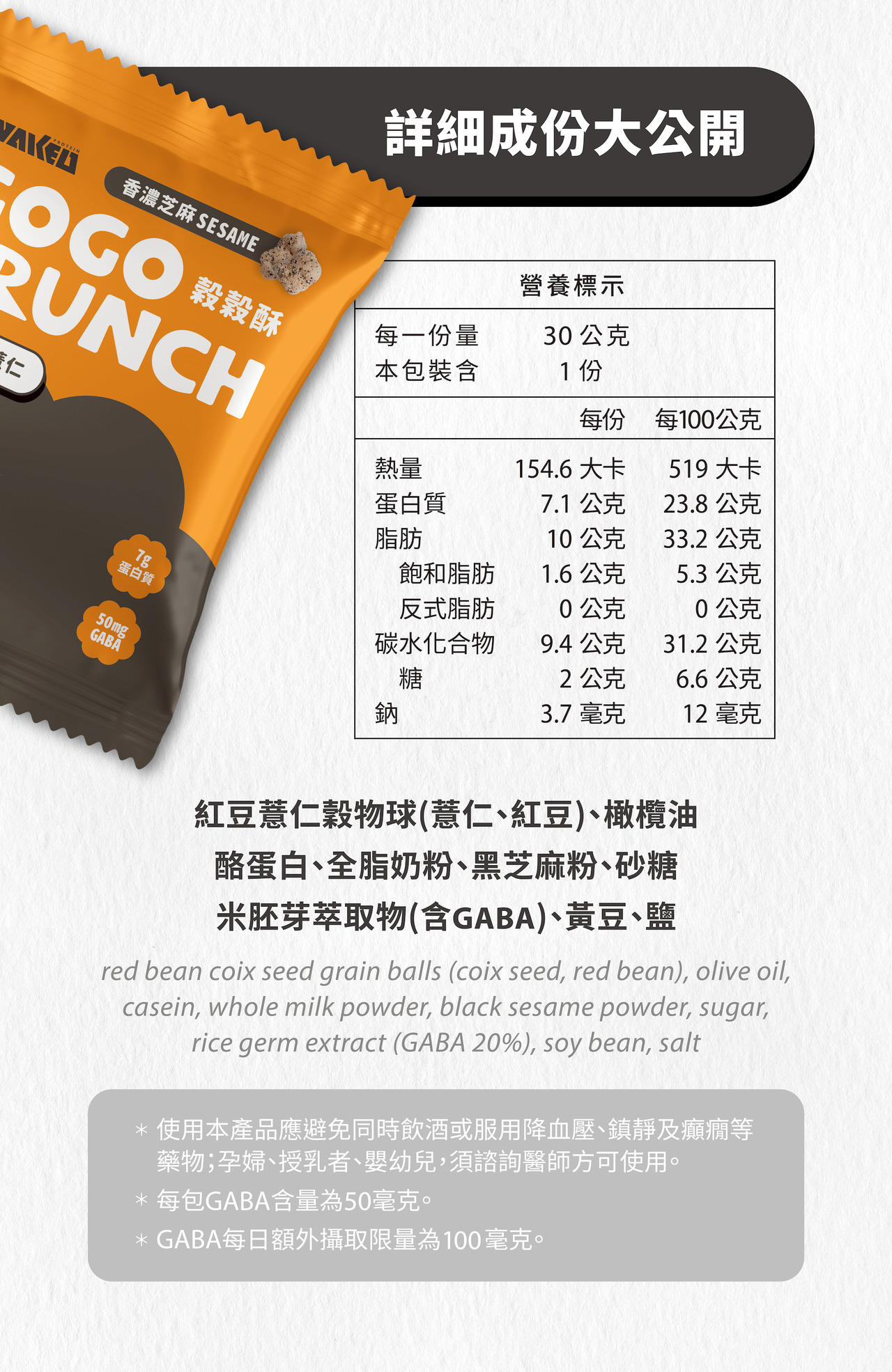 ✔️ 添加 GABA(**麩胺酸發酵物(含GABA)) 50mg