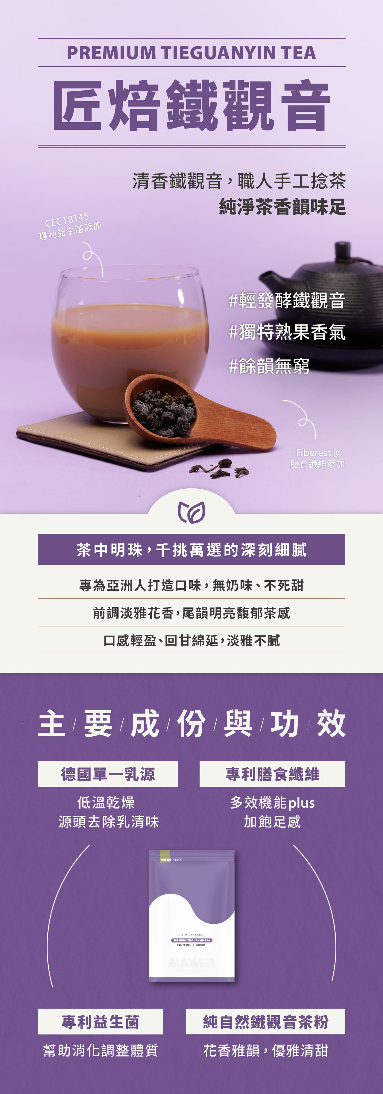 ● 茶韻 +30%|鐵觀音茶葉現磨,前調淡雅花香,尾韻明亮馥郁茶感