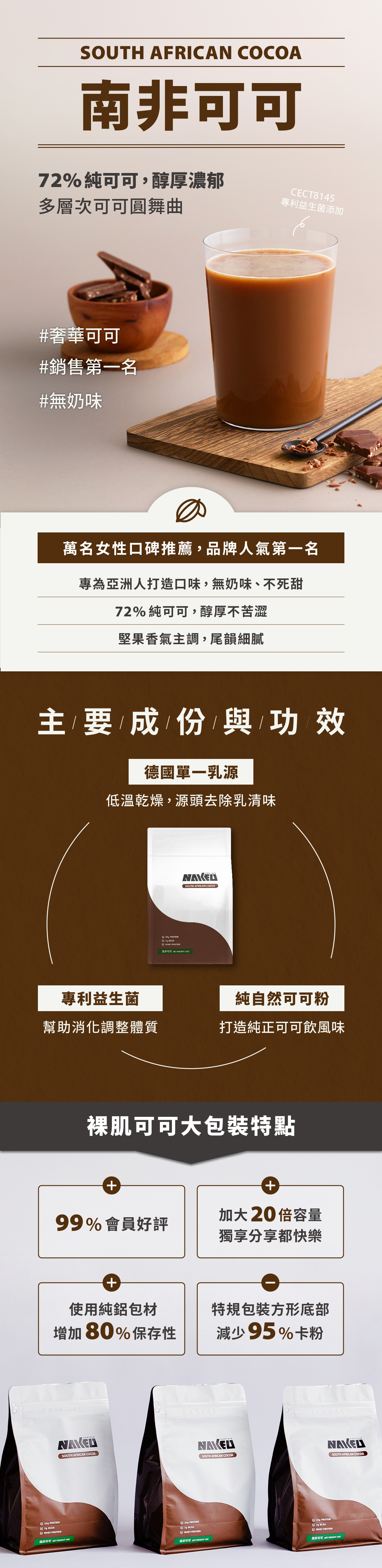 ✔ 天然可可粉不含香精,可可香氣絲滑誘人,裸肌常年銷售冠軍!