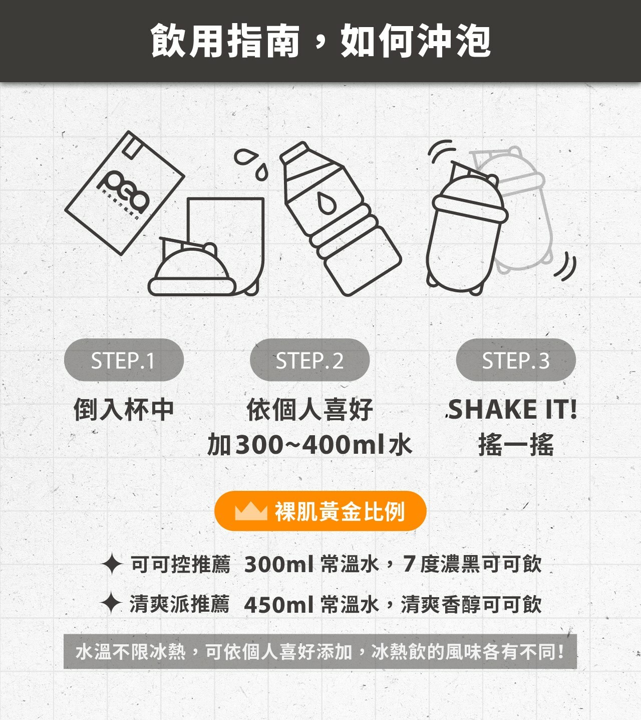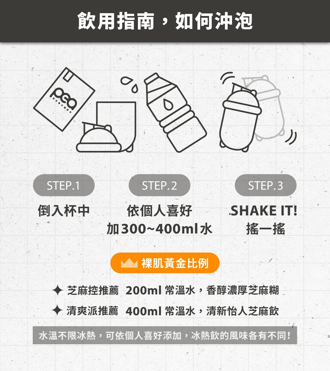 產品口味:植黑芝麻/醇黑可可/馥郁紅茶 (口味擇一)