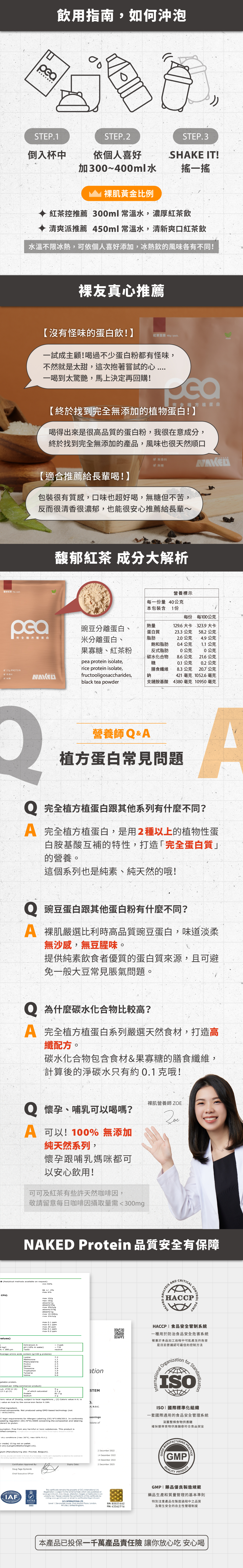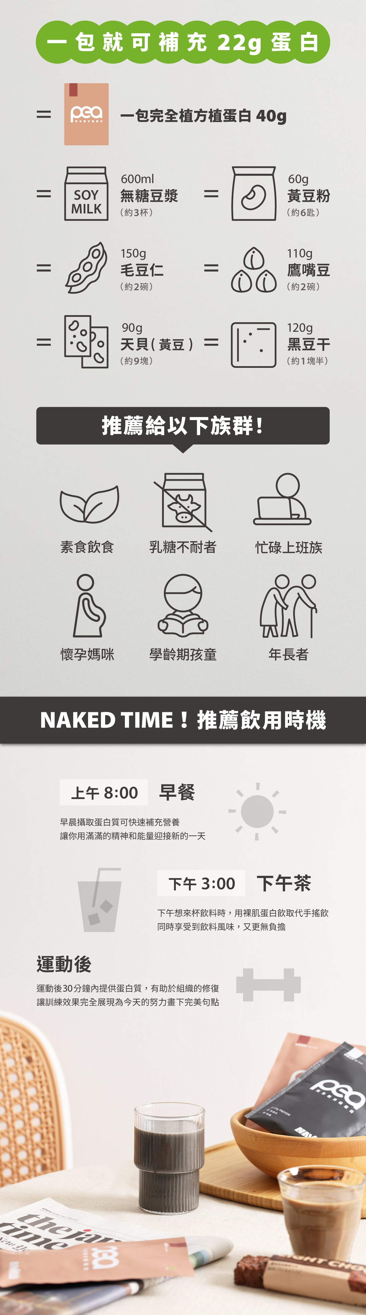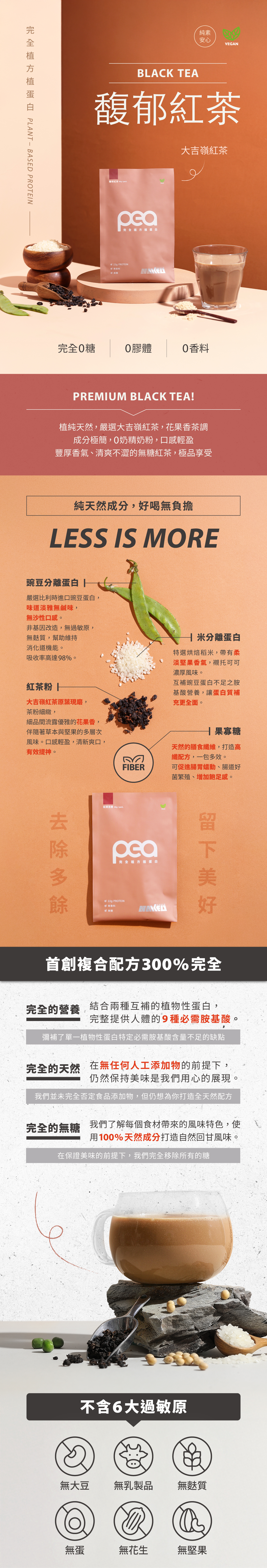 ✔️ 豌豆蛋白+米蛋白,不易過敏及脹氣